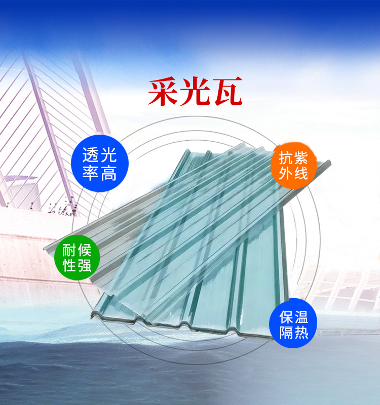 • 輕質(zhì)高強采光瓦便于搬運、安裝,其抗沖擊強度可達(dá)玻璃的200倍以上